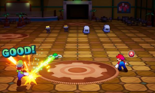Gespielt werden Mario und Luigi gleichzeitig – jeder Bruder hat seinen eigenen Knopf. So müssen viele Aktionen als Team ausgeführt werden: gemeinsam springen, Hindernisse überwinden oder Gegner angreifen. Luigi übernimmt gelegentlich auch eigene Aufgaben, etwa beim Sammeln von Gegenständen. Zu zweit spielen können wir aber leider nicht, es geht nur für einen Spieler.