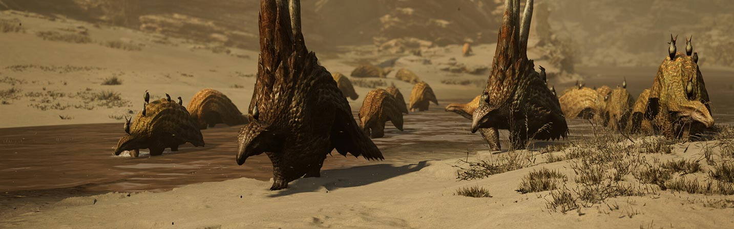 Die Welt von “Monster Hunter Wilds” ist dynamisch: Wetter, Tageszeit und Umgebung beeinflussen auch das Verhalten der Monster. Manche ziehen sich bei Sturm zurück, andere werden aggressiver. Auch die Umgebung verändert sich – etwa durch Sandstürme oder wandernde Herden. Dadurch fühlt sich jede Jagd anders an und bleibt spannend.