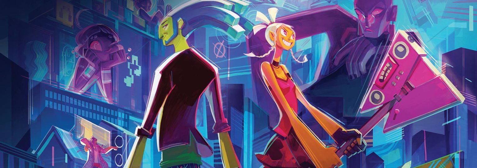 In “No Straight Roads” nutzt der Spieler die Kraft der Musik, um gegen ein böses Imperium zu kämpfen. Dabei spielt die Musik die ganze Zeit eine wichtige Rolle: Gegner greifen im Takt eines Songs an, auch Hindernisse im Level bewegen sich dementsprechend. Der Spieler bewegt sich derweil völlig frei. Allerdings können wir bestimmte Angriffe dem Takt anpassen und, wenn wir sie im richtigen Moment einsetzen, so effektiver sein. Es ist also nicht zwingend notwendig, dass der Spieler musikalisch veranlagt ist – aber je mehr wir auf die Musik hören, desto besser kommen wir in den Passagen voran.
