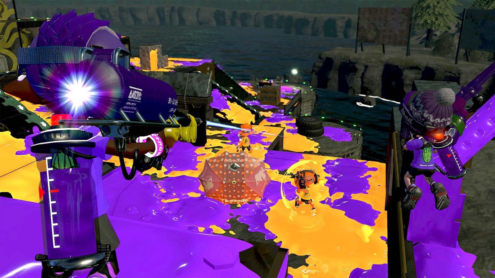 Das Spiel ist der Nachfolger von “Splatoon” auf Wii U. In diesem zweiten Teil warten neue Level, neue Mode und neue Waffen. Spieler können auf dem Fernseher oder unterwegs gegen andere antreten. “Splatoon 2” unterstützt lokale Mehrspielerpartien per System-Link ebenso wie einen Online-Mehrspielermodus. Mit der Nintendo-Switch-App für Smartphones kann man außerdem an einem Voice-Chat teilnehmen und mit anderen Spielern sprechen.