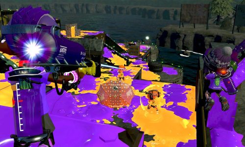 “Splatoon 2” ist im Kern ein klassischer Online-Shooter – mit dem Unterschied, dass das Spiel sehr kinderfreundlich daher kommt und wir mit Farbspritzpistolen gegen andere Spieler antreten. Im 4er-Team treten wir gegen eine andere Gruppe an und müssen in der vorgegebenen Zeit möglichst viel Farbe unseres Teams in der Kampfarena versprühen. Nach drei Minuten ist rum, dann wird ausgewertet. Das Spiel hat auch einen Einzelspielermodus, in dem wir verschiedene Mission in geradlinigen Leveln meistern müssen.