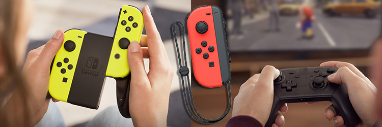 Die sogenannten Joy-Con-Controller werden entweder an die Switch-Konsole angesteckt, um sie unterwegs zu nutzen, oder der Spieler nimmt sie von der Konsole ab. Es gibt einen linken und einen rechten Joy-Con, die je nach Spiel gemeinsam oder getrennt verwendet werden. Einzelspieler können beide Hälften zusammenstecken und so wie ein klassisches Gamepad spielen. Es ist aber auch möglich, mit nur einem einzigen Joy-Con zu spielen. Dann können sich zwei Spieler den linken und den rechten Joy-Con teilen und zu zweit spielen – zum Beispiel in “Mario Kart 8 Deluxe”.